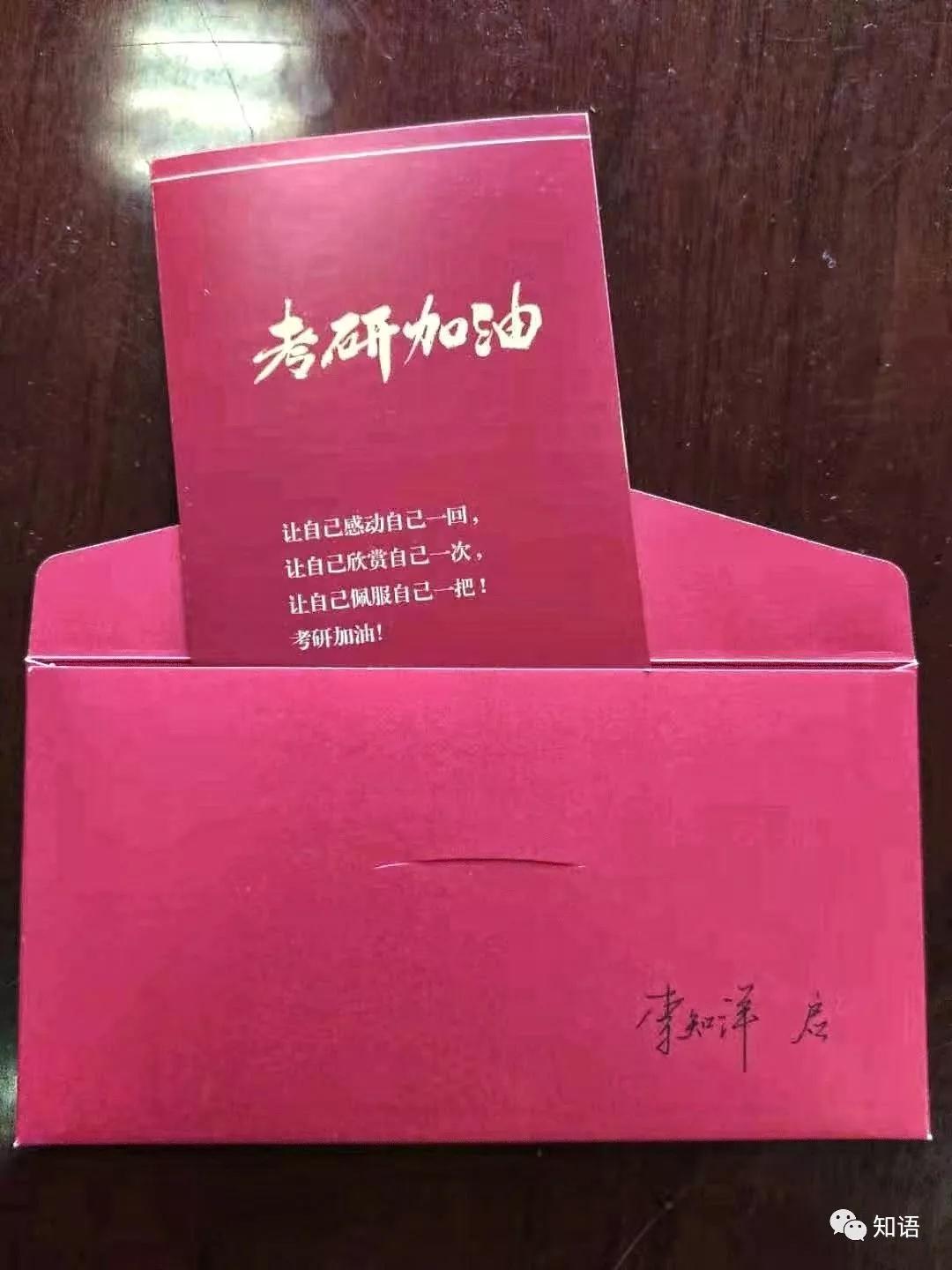 贺卡上写着,“不久后你将参加硕士研究生考试,备考期间你有过焦虑,也有过彷徨,更有辛苦,但更多的是期待!坚持住,你就是成功的!我们是你坚强的后盾,预祝你在2020年硕士研究生考试中金榜题名!”这一字一句的祝福舒缓了考研学子备考的紧张,温暖了他们的心。