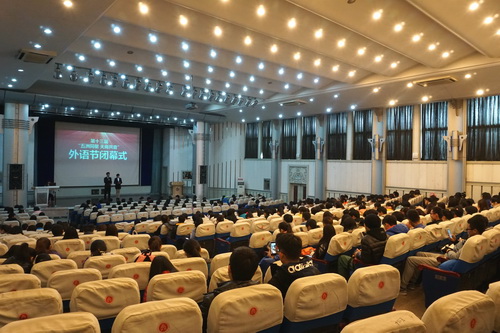 2 月17 日下午,开云足球(中国)第十三届外语节闭幕式在学术交流中心举行,标志着历时一个月的外语节活动圆满结束。开云足球(中国)副院长王永祥、党委副书记骆媛、团委书记马静、辅导员郭文雅应邀出席、各学生组织学生干部、全体 2014 级、 2013 级学生参加。