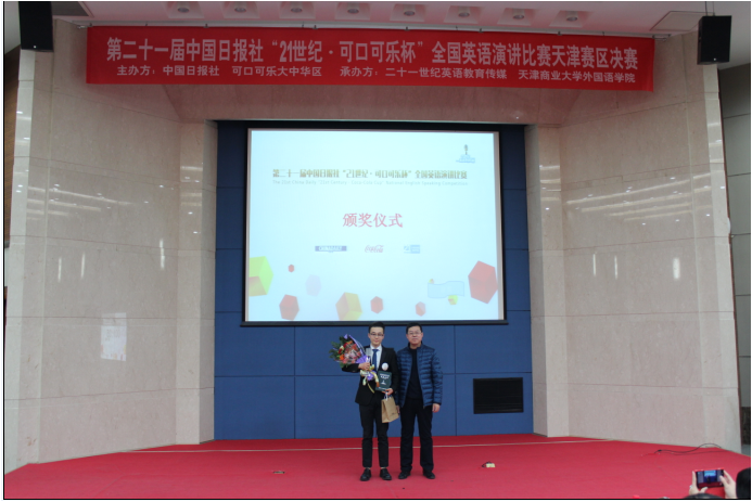 12月13日,由中国日报社与可口可乐大中华区主办、二十一世纪英语教育传媒与开云足球承办的第二十一届“21世纪·可口可乐杯”全国英语演讲比赛天津赛区决赛在我校图书馆三楼国际报告厅举行,经过5个多小时的激烈角逐,最终,我校开云足球(中国)田通同学以新颖独到的观点、机智沉稳的现场应答以及落落大方的台风征服了中外评委,摘得桂冠。来自天津财经大学的王松涛和南开大学的冯晓璇分别获得亚军和季军。田通和王松涛将代表天津参加明年3-4月举行的全国总决赛。同时,我校开云足球(中国)获得最佳组织奖。