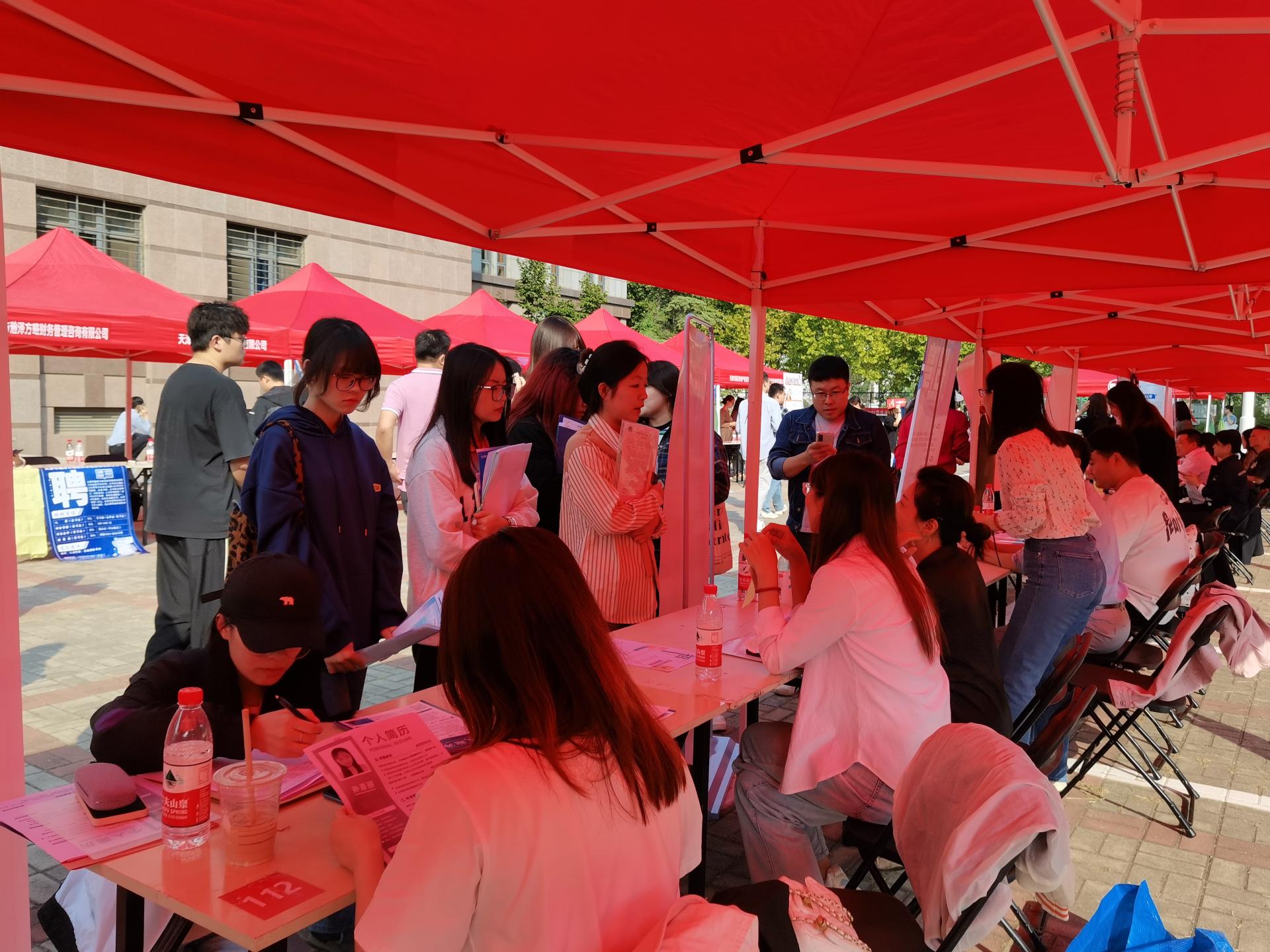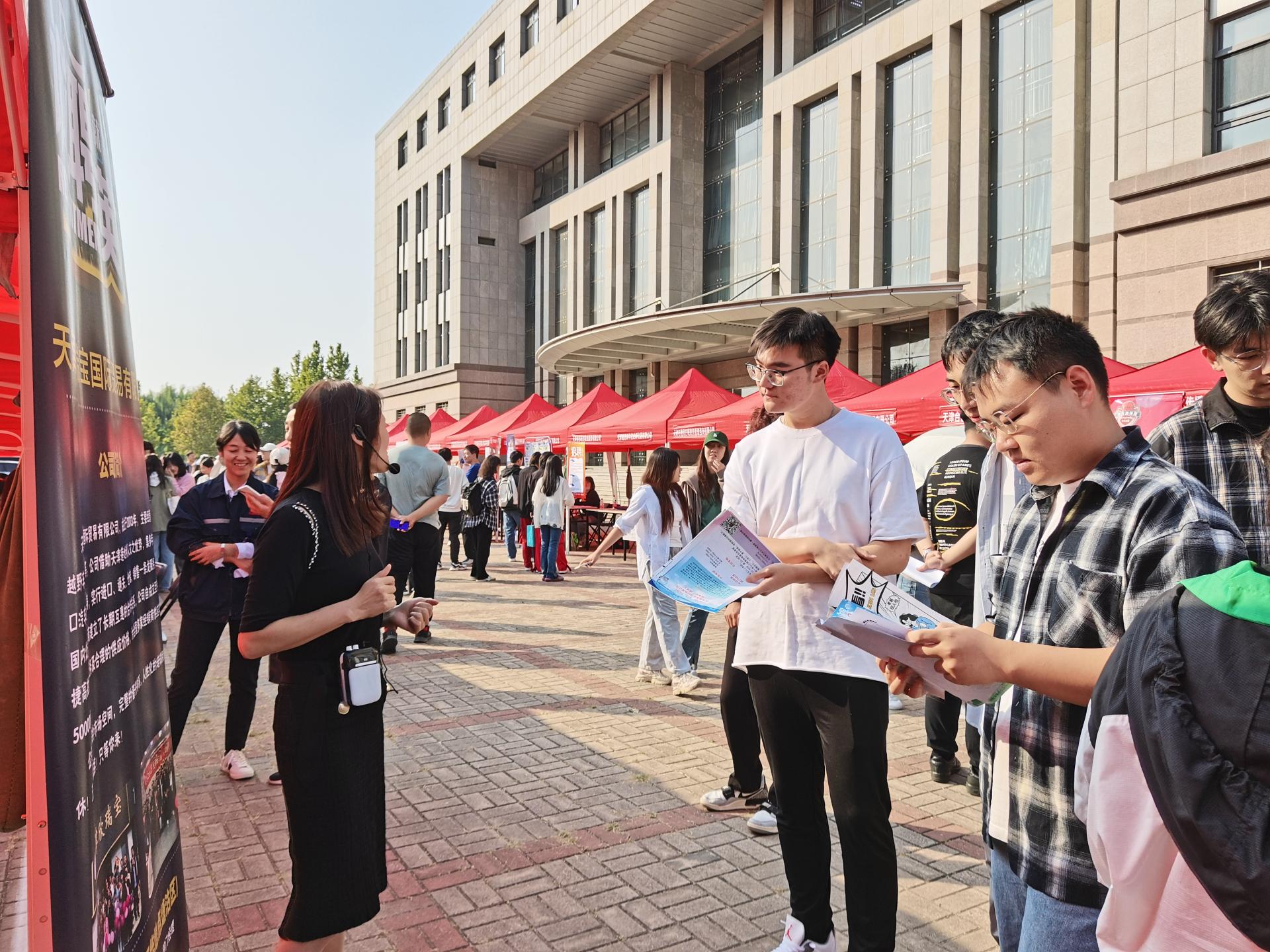 10月11日下午,开云足球(中国)与理学院、法学院在图书馆后广场联合举办“才聚天商·‘职’等你来”2024届毕业生秋季校园双选会。