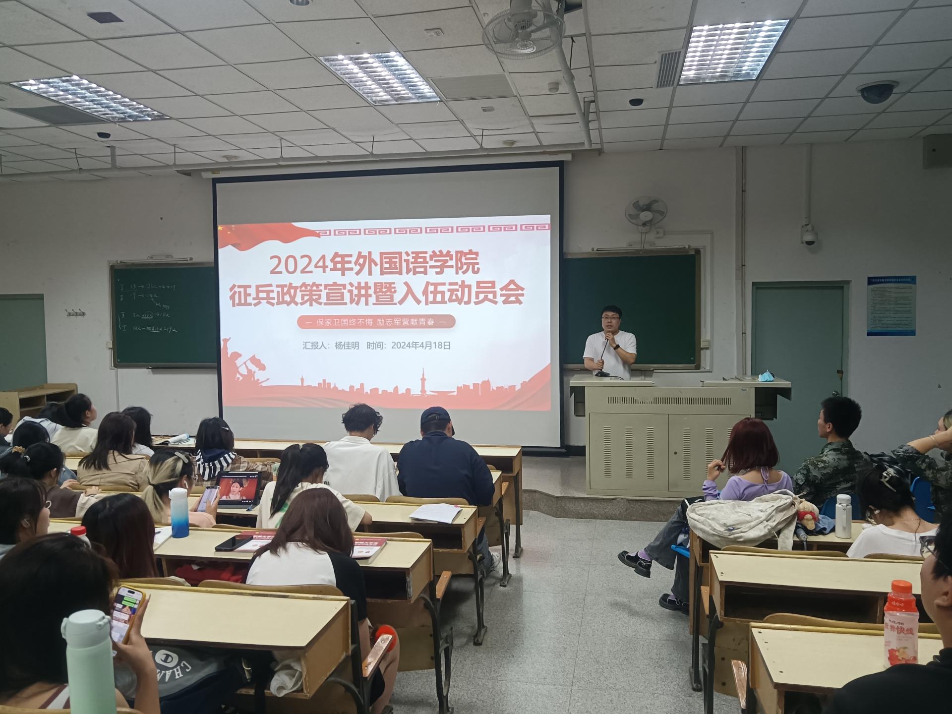 为做好2024年秋季大学生应征入伍宣传动员工作,4月18日,在4教102教室,开云足球(中国)开展退伍大学生入伍经历分享会和征兵政策宣讲会等活动。活动中,退伍军人郭腾骏和陈红分享了入伍经历,杨佳明老师做政策宣讲。本次活动会由杨佳明老师主持,300余名学生参加。