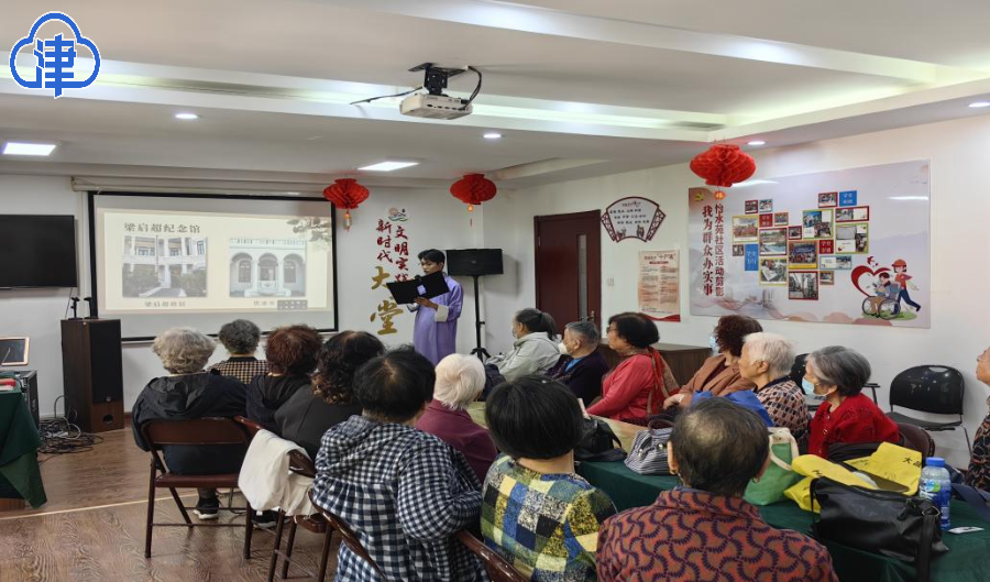 “今吾朝受命而夕饮冰,我其内热与?”活动伊始,宣讲人王浩宇身着大褂,沉浸式讲述新文化运动先驱者梁启超的护国事迹。他时而高亢激昂,时而娓娓道来,带领在座居民重新回到那个令人热血沸腾的五四运动时期。当讲到以梁启超为代表的无数仁人志士为救亡图存而身先士卒时,大家纷纷为之感慨动容。