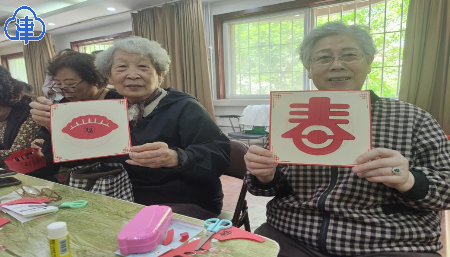 接着,颜岑宇、黄文敏现场教学,带领居民们体验非遗剪纸文化。大家围坐在一起,一双手、一方红纸、一把剪刀……伴随沙沙的剪纸声和热烈的交谈声,不一会儿,天坛、京韵大鼓、中国结等图案的剪纸手工艺品便跃入眼帘,居民们相互展示着自己的手工成果,享受劳动带来的满足,现场充满了欢声笑语。
