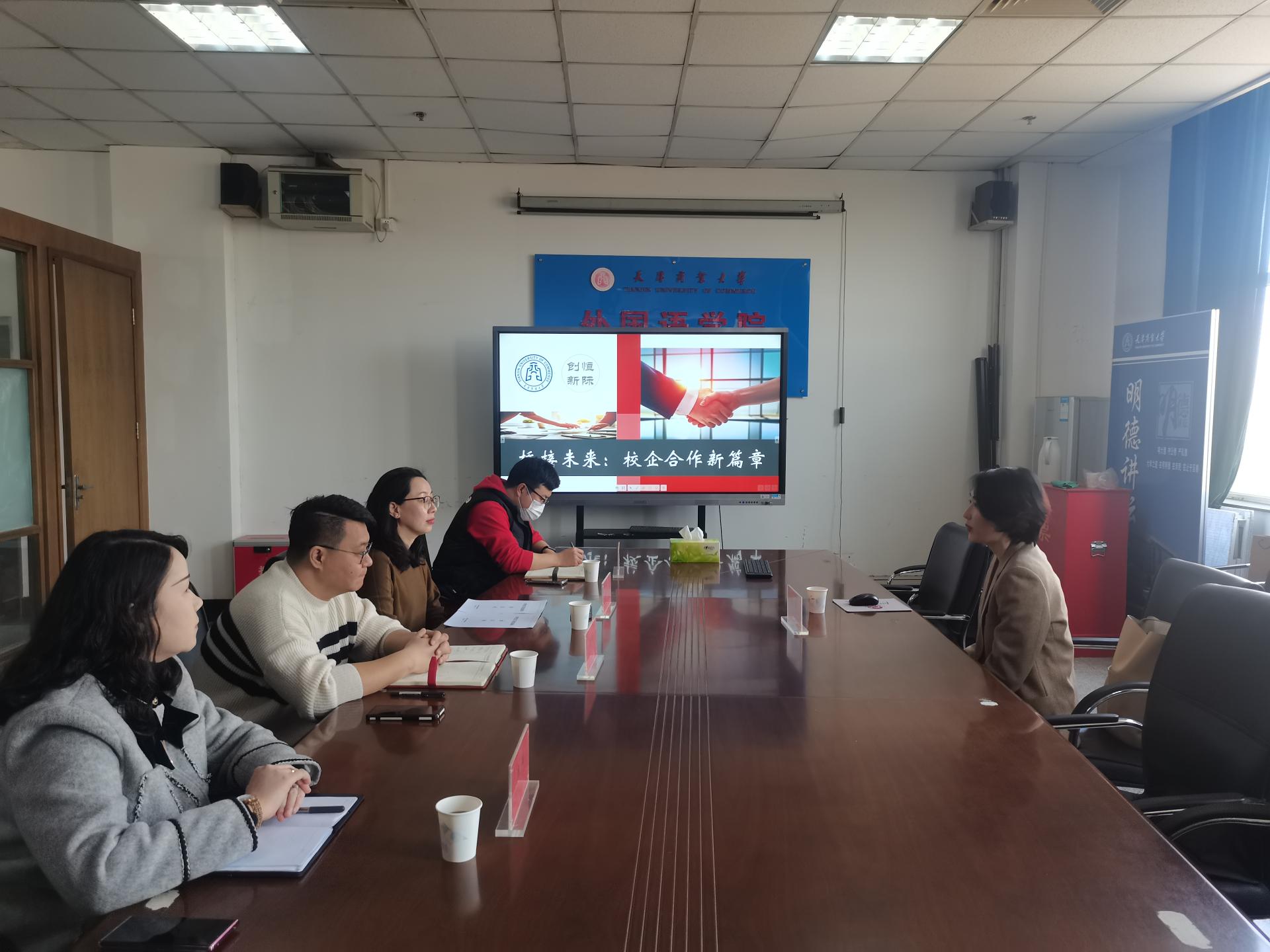 会上,孟凡荣对天津创恒新际信息技术有限公司表示欢迎,并介绍了学院发展历程、专业设置,人才培养计划、毕业生基本情况和近年来学院毕业生就业情况。同时,希望与企业在岗位推荐、人才培养、科研合作、项目对接等方面进一步深入合作。企业招聘负责人孙月介绍了公司的发展历程、企业文化、招聘需求和薪资待遇等情况,并表示将强化与学院的沟通,架构起学生实习就业的桥梁。