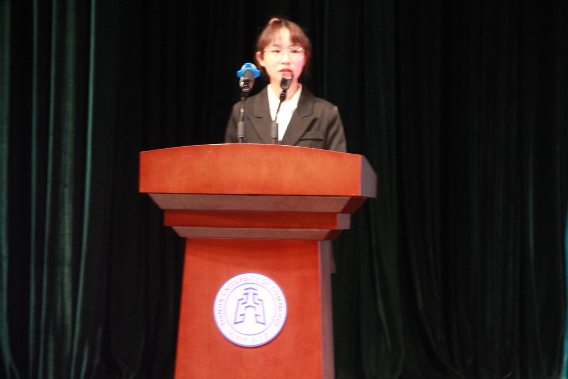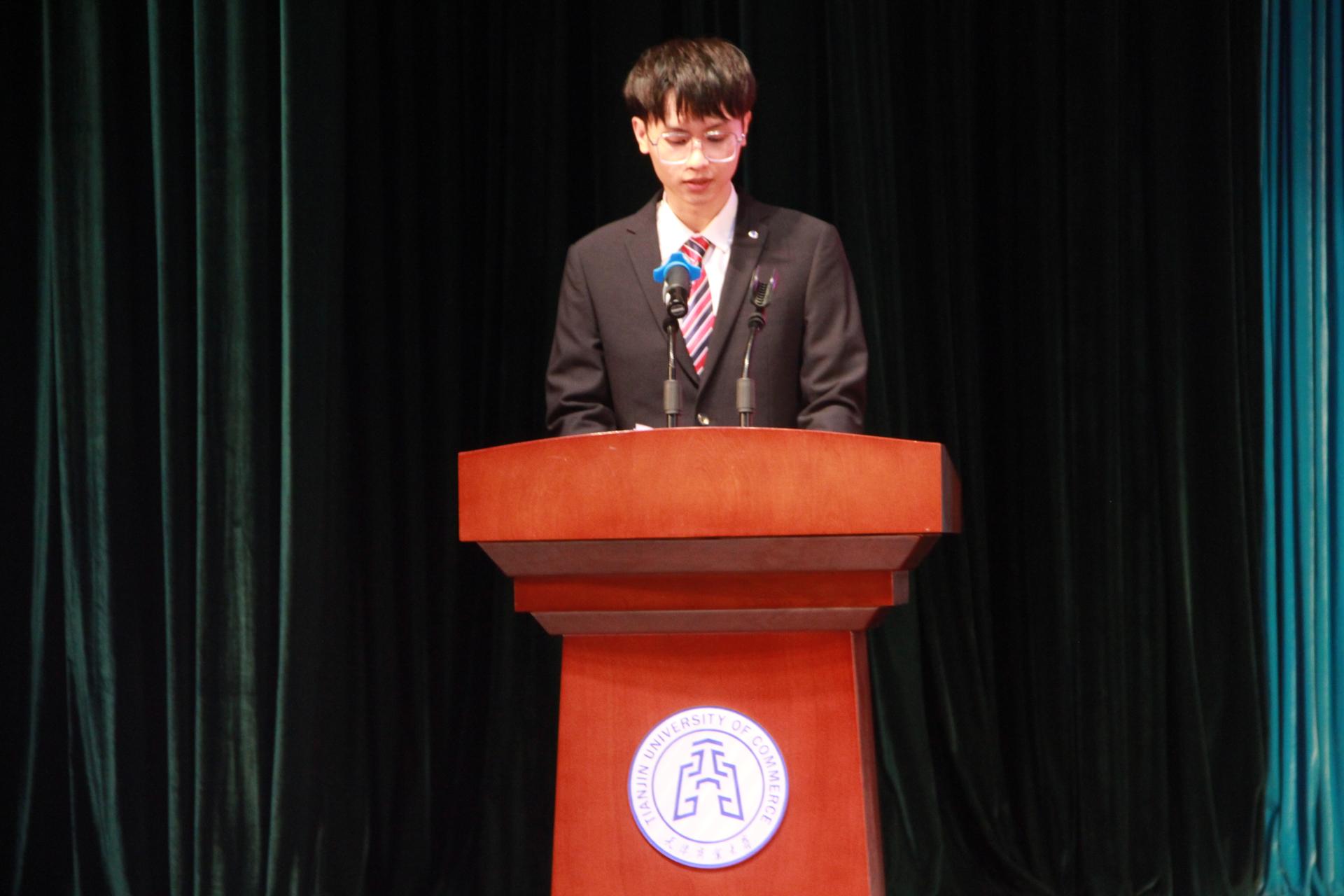 紧接着,学生代表们有序上台发言。2019级学生李慧丽分享了自己两年大学时光中丰富和实践和工作经历,鼓励新生在奋斗中成就自己;2021级研究生朱俊涛则勉励在座新生珍惜光阴,潜心钻研,苦练本领,扩充知识储备,为日后迈向社会奠定坚实基础;2021级新生颜岑宇,希望所有新生能够继续高三拼搏奋斗的精神,兼顾生活与学习,面对生活饱含热情,乘风破浪,铺就似锦前程。