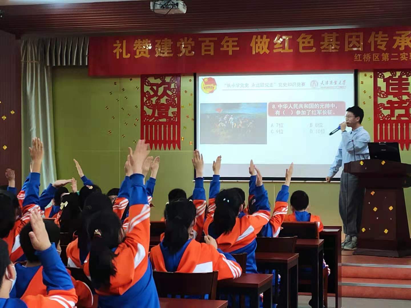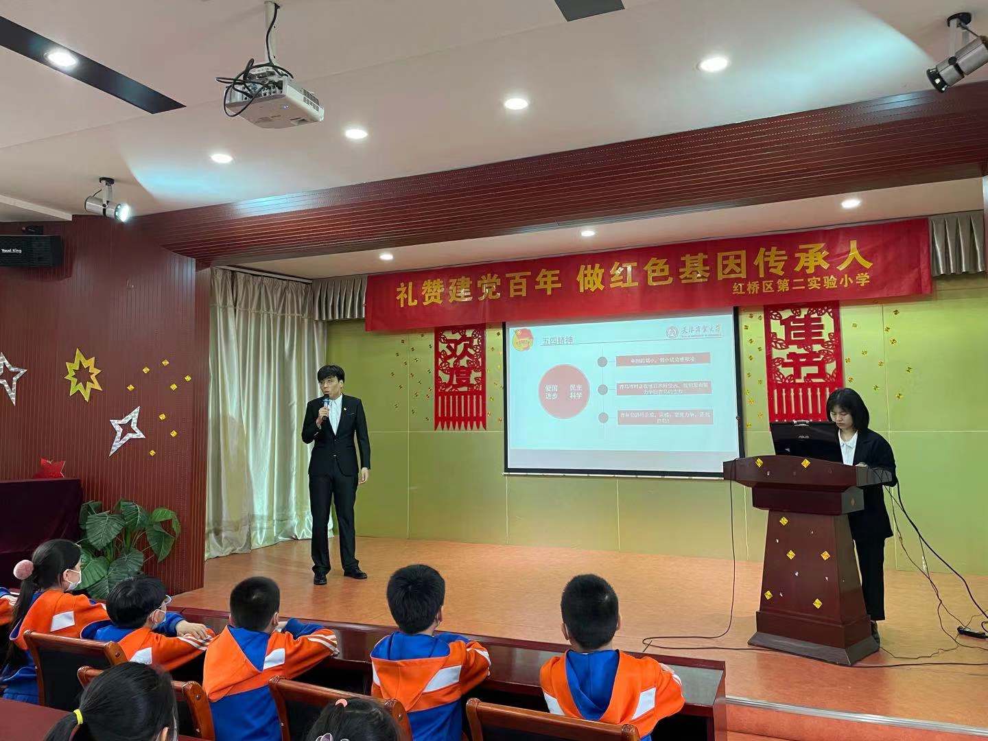 为深入贯彻落实党的十九大、十九届五中全会精神和习近平新时代中国特色社会主义思想及系列重要讲话精神,传承“党是先锋队、团是突击队、队是预备队”红色血脉,引导广大青少年学生树立正确价值观,推动大学生党员和青年团员积极融入社会、服务社会、回馈社会,开云足球(中国)走出校园,与红桥区第二实验小学携手打造“红心向党,青春领航”党团共建工程。