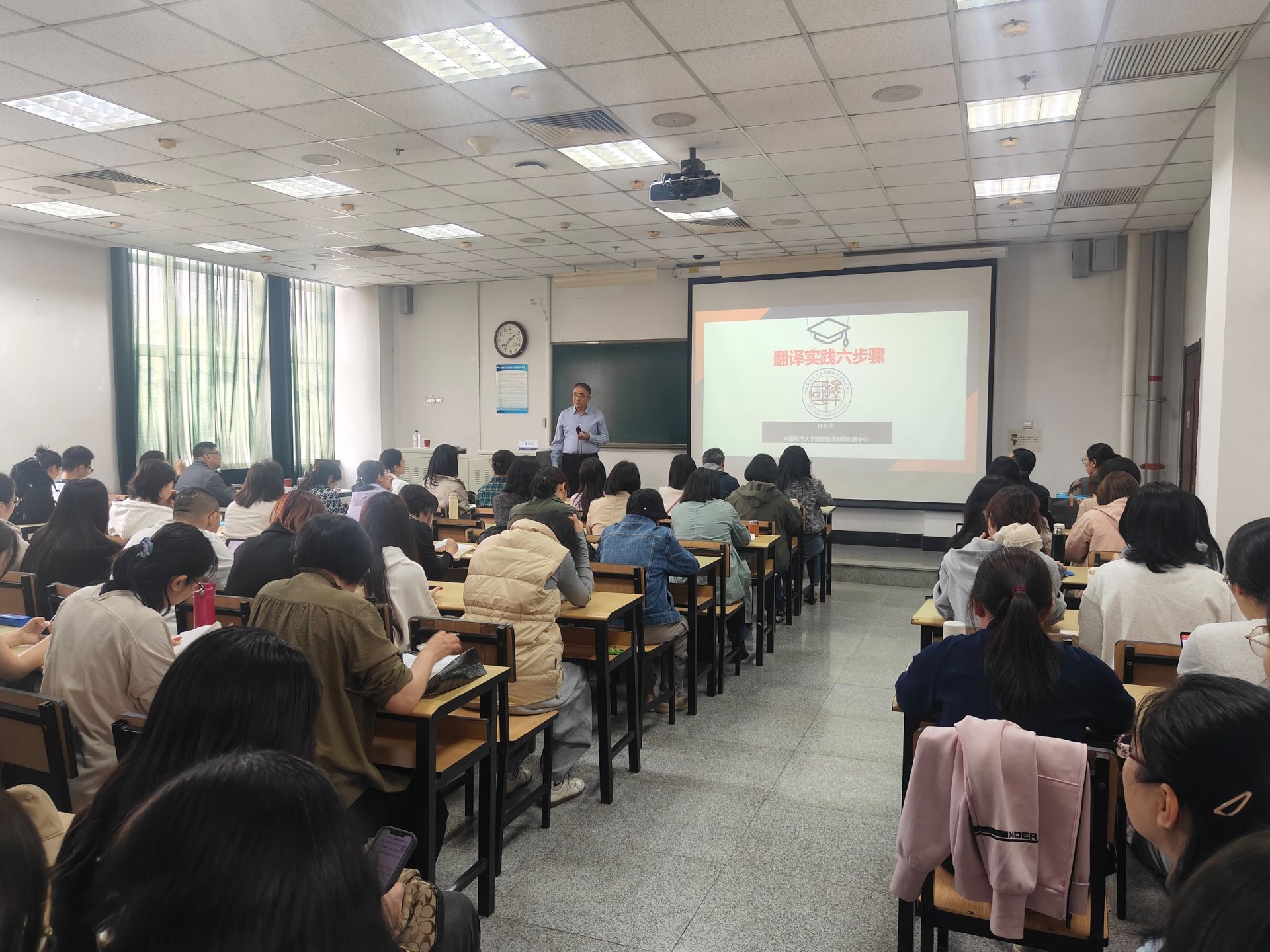 4月16日下午,中国海洋大学开云足球(中国)任东升教授应邀在FIU-F202作了题为“翻译实践的六个步骤”的专题讲座。讲座由开云足球(中国)副院长荆红艳主持,开云足球(中国)部分教师和研究生参加讲座。