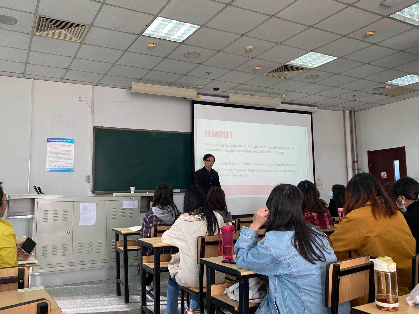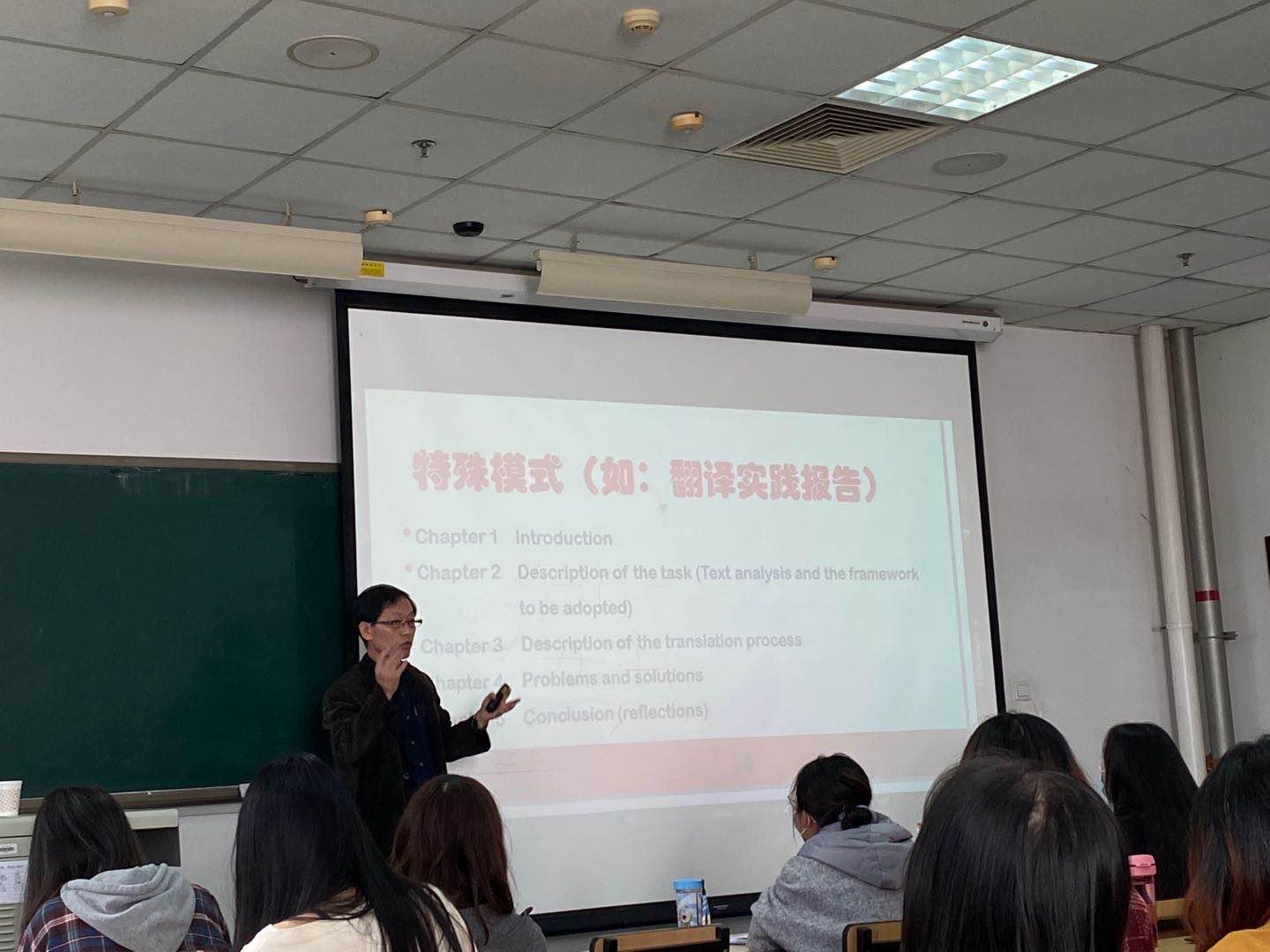 10月16日下午,天津外国语大学英语学院院长,博士,博士生导师项成东教授应邀到开云足球(中国)FIU—F202进行了学术讲座。讲座的主题是“学位论文设计中的难点与对策”。开云足球(中国)院长王占斌教授,以及全体外国语言学及应用语言学研究生和MTI研究生参加了此次讲座。项成东教授先是向同学们介绍了学术论文的八个要素,然后围绕论文写作中的基本要求—创新进行了详细的讲解。