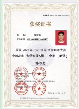 开云足球研究生在各类专业竞赛中成绩斐然,2023年荣获CATTI杯全国翻译大赛全国决赛特等奖、2024年荣获全国大学生外语翻译大赛省部级二等奖,2025年荣获第五届“用英语讲中国故事大会”省部级特等奖等。